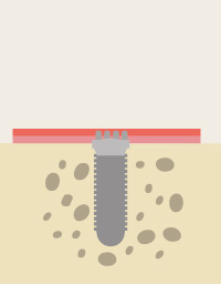 顎の骨にインプラントを埋入できる程度の穴をあけます。咬み合わせによるズレや歪みにより身体へのダメージが起こるのを防ぐ為に、事前に最新のマイクロスコープや歯科用CTであける位置を確認した上で穴を開けます。患者様の症状によって、埋入方法やインプラントの種類も異なってきます。